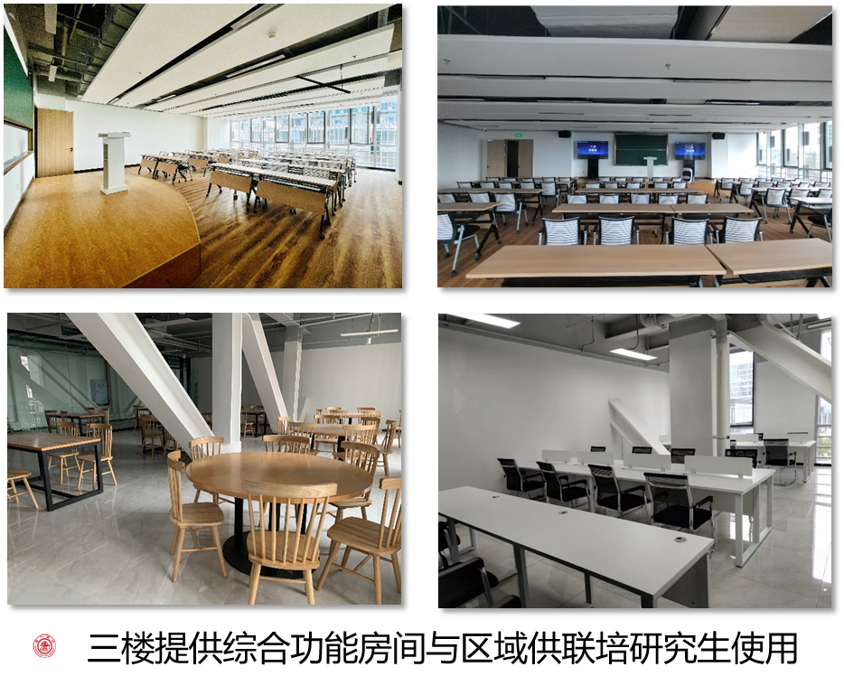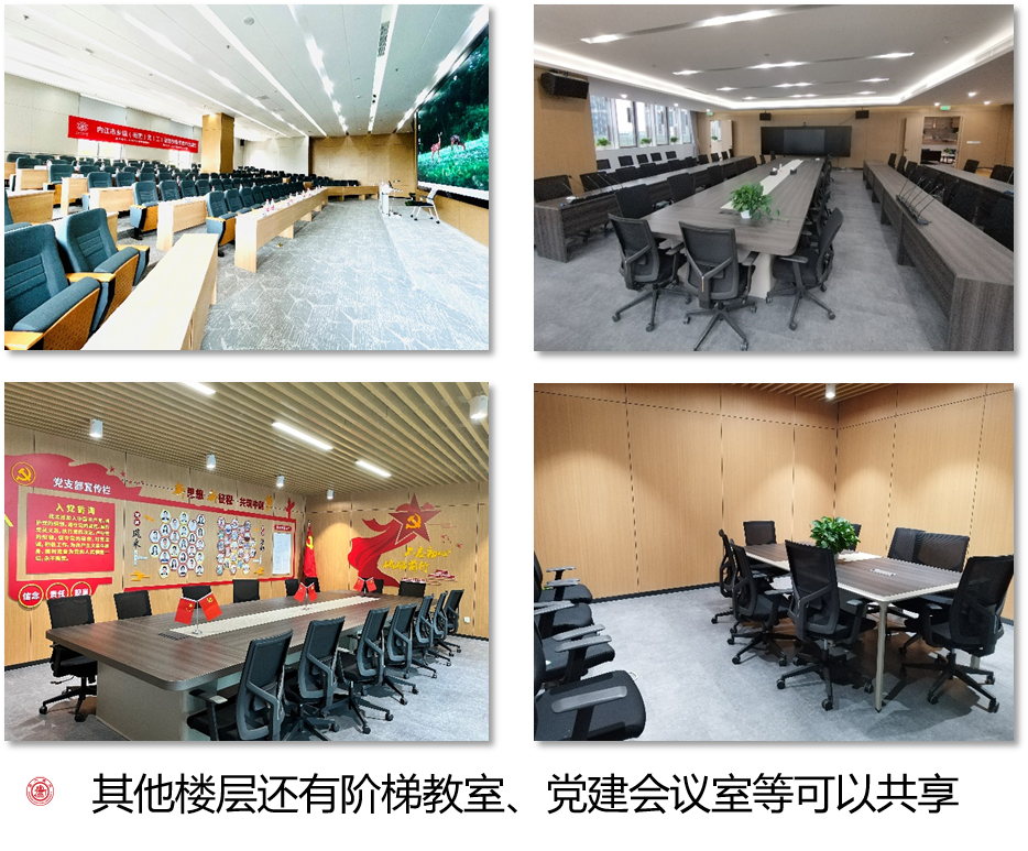 ■ 上海交大天府科技园开辟独立一层,约2000平方米,规划有教室、自习室、远程教室、小型会议室、讨论室、实验室等。基地距地铁口200米,交通便利,园区有食堂及商业配套,生活便捷。大楼内其他空间可充分共享。