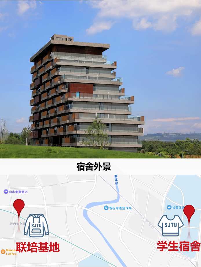 学生第一学年在上海交通大学校内学习;其余时间在联合培养基地(四川研究院)学习、科研直至毕业,校内不再提供宿舍。