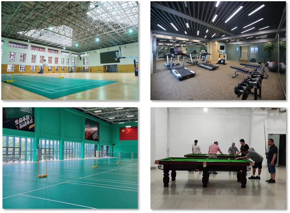 ■ 基地内设有健身房,园区内有足球场、篮球场可预约使用。