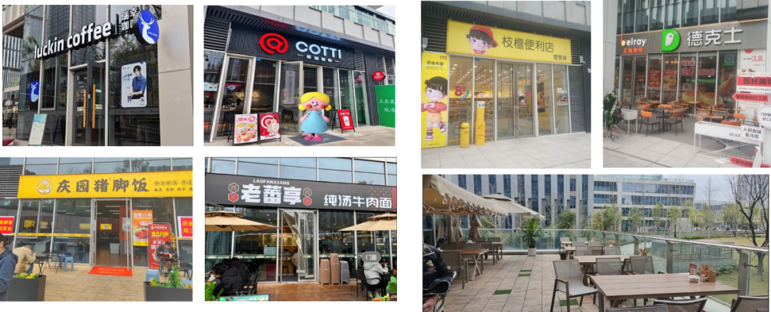 ■基地所在园区入驻多家店铺,有瑞幸、库迪、德克士等,陆续还有更多店铺待开业。