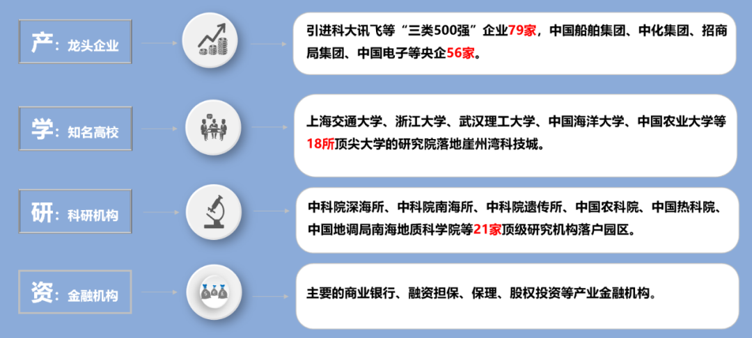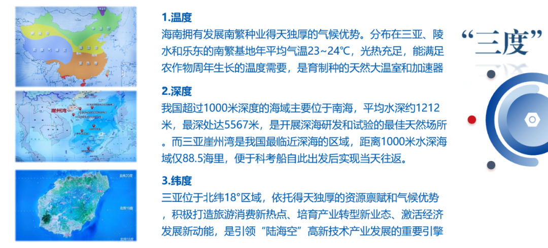 海南自由贸易港建设旅游业、现代服务业、高新技术产业和热带特色高效农业四大主导产业,涉及13个重点园区,聚焦深海、南繁、航天三大科技创新高地。