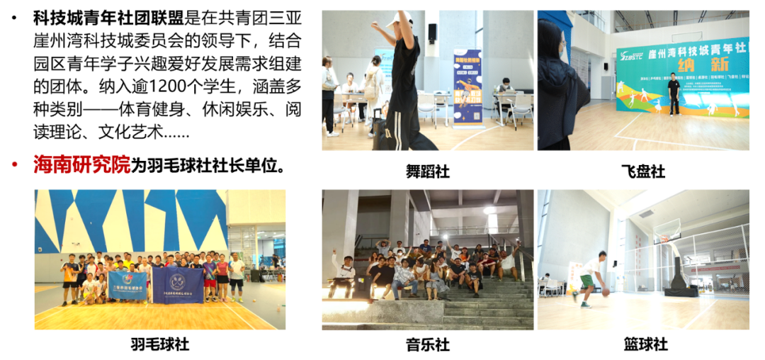 深入推进园区文体建设,打造具有海南特色的文化生活,研究院开展多项特色活动。如西沙行出海活动、非遗文化体验活动、元旦晚会、“思源杯”羽毛球赛等等。