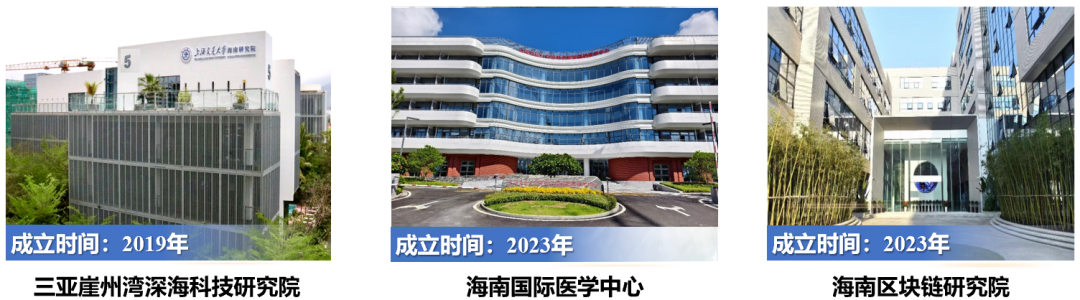 2024年,上海交通大学进一步加强支持海南自贸港建设,成立海南研究院,负责协调上海交通大学三亚崖州湾深海科技研究院、上海交通大学海南区块链研究院在琼有关科研及人才培养工作并对接联系海南国际医学中心,与上海交通大学三亚崖州湾深海科技研究院合署办公。